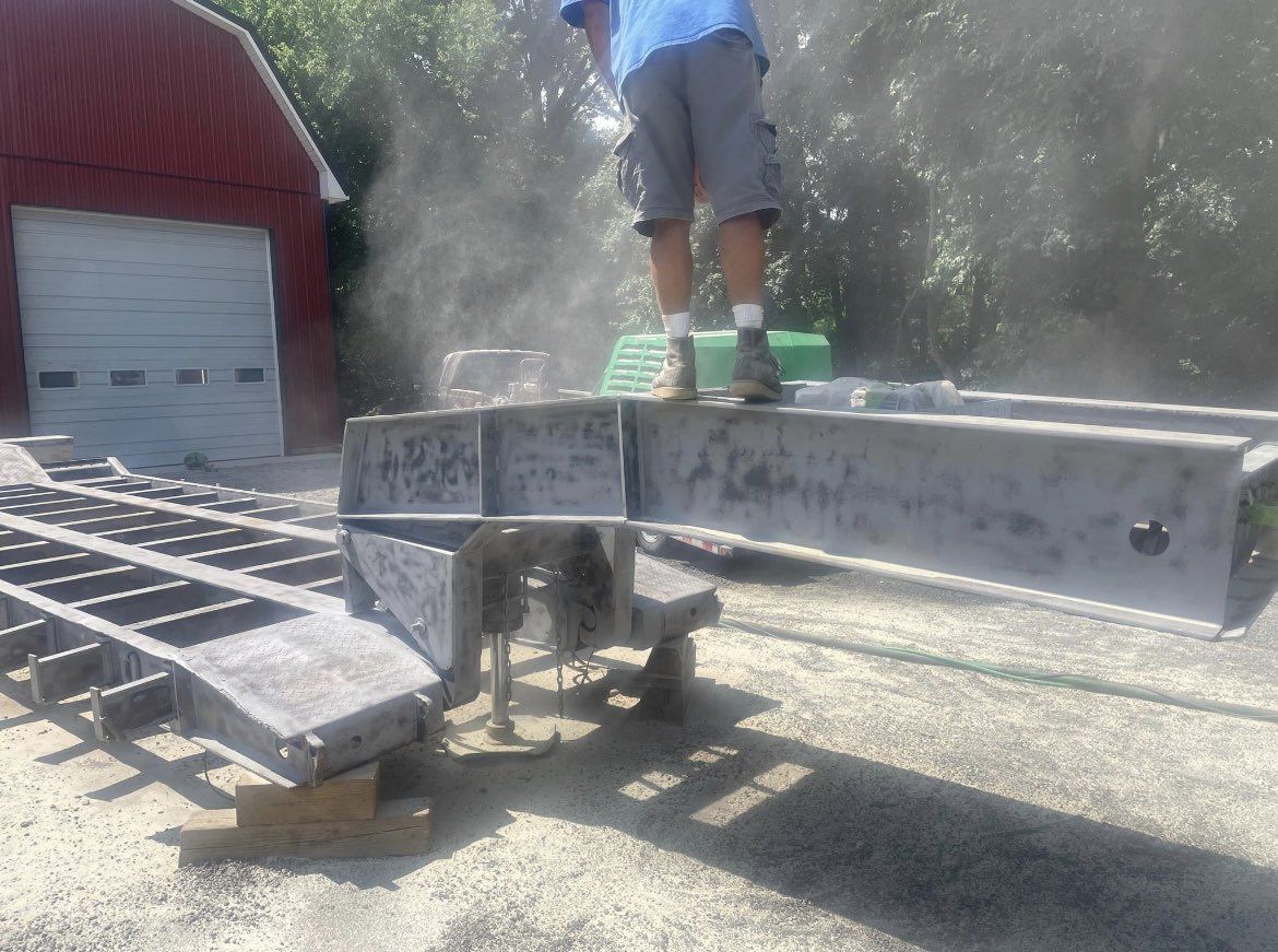 Paint and Rust removal from a 30' "low boy" equipment trailer